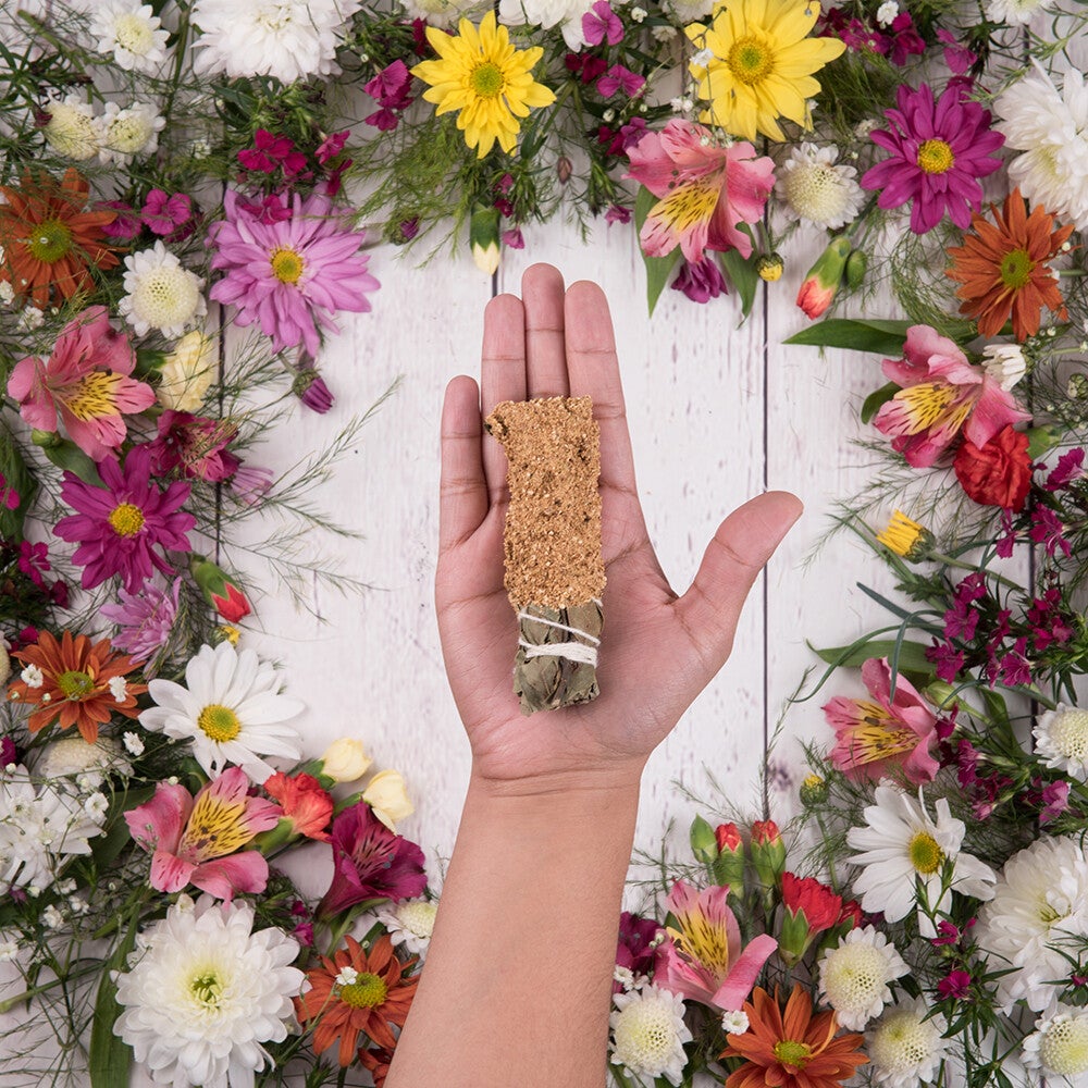 Smudge-stick met Mirre en Palo Santo. Display-doosje met vijf stuks.