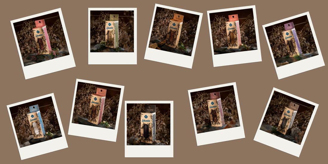 Een mooi onderdeel van deze lijn zijn de doosjes met 'sahumito's'; een ruim aanbod van verschillende soorten kleine smudgesticks met elk een eigen energetische waarde.